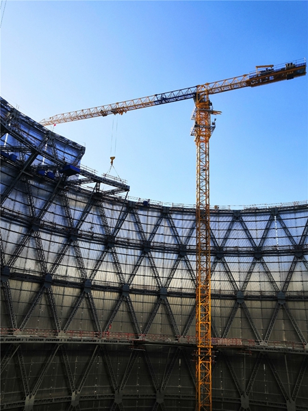 目前,這座大型鋼結(jié)構(gòu)間冷塔即將結(jié)構(gòu)封頂,北京龐源的這兩臺塔機(jī)也將隨即轉(zhuǎn)入同一電廠的第二座鋼結(jié)構(gòu)間冷塔的施工建設(shè)。下圖是施工中的精彩瞬間。