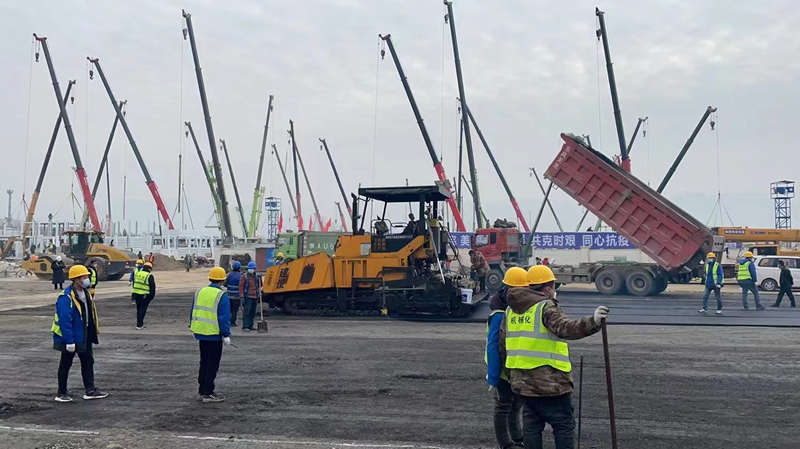 20211229日上午,我公司接到陜建華山路橋的緊急通知,參建西安市高新區(qū)方艙醫(yī)院項(xiàng)目,在疫情蔓延形勢(shì)復(fù)雜嚴(yán)峻的情況下,防控工作刻不容緩,我公司立即將參建放艙醫(yī)院作為一項(xiàng)特殊時(shí)期重要、緊急、光榮的任務(wù),高度重視、迅速響應(yīng)。各部門職工紛紛主動(dòng)請(qǐng)纓,積極投身方倉(cāng)醫(yī)院建設(shè)。由于疫情影響,面對(duì)原材料短缺、勞務(wù)人員短缺,我們克服了重重困難,迅速集結(jié)了30余名管理人員組成施工突擊隊(duì),第一時(shí)間奔赴現(xiàn)場(chǎng)。當(dāng)天下午4點(diǎn),組織包括兩臺(tái)ABG8620瀝青攤鋪機(jī)、同步碎石封層車、雙鋼輪壓路機(jī)、膠輪壓路機(jī)、及小型前鋼后膠壓路機(jī)等機(jī)械設(shè)備已進(jìn)入工地現(xiàn)場(chǎng)。同時(shí)前場(chǎng)技術(shù)員、施工員、安全員、后勤員、運(yùn)輸隊(duì)均已進(jìn)入各自工作崗位。1229日起,連夜生產(chǎn)8000余噸二灰碎石混合料,道路面層采用瀝青混合料進(jìn)行鋪設(shè),生產(chǎn)成品瀝青混合料5000余噸,經(jīng)過(guò)全體人員不分晝夜,緊張有序的連續(xù)施工,高新區(qū)放艙醫(yī)院項(xiàng)目順利完成。