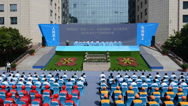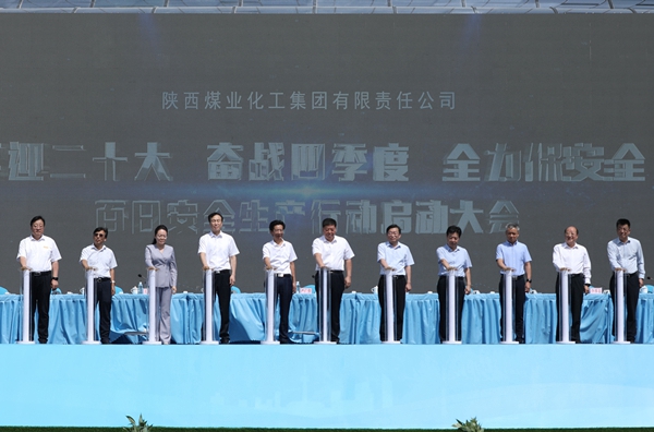 與會領(lǐng)導共同啟動陜煤集團“喜迎二十大、奮戰(zhàn)四季度、全力保安全”百日安全生產(chǎn)大行動。