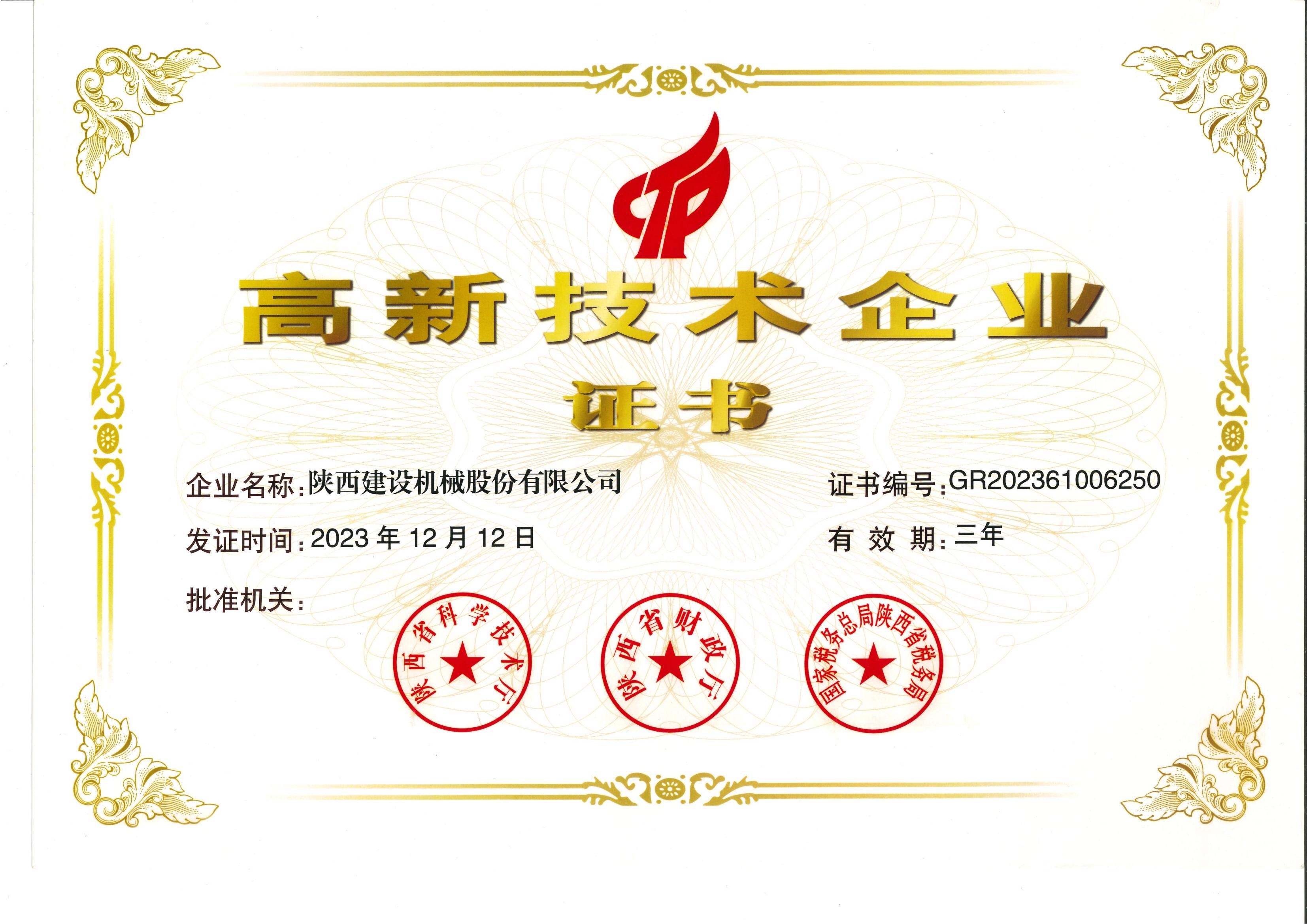 高新技術(shù)企業(yè)證書