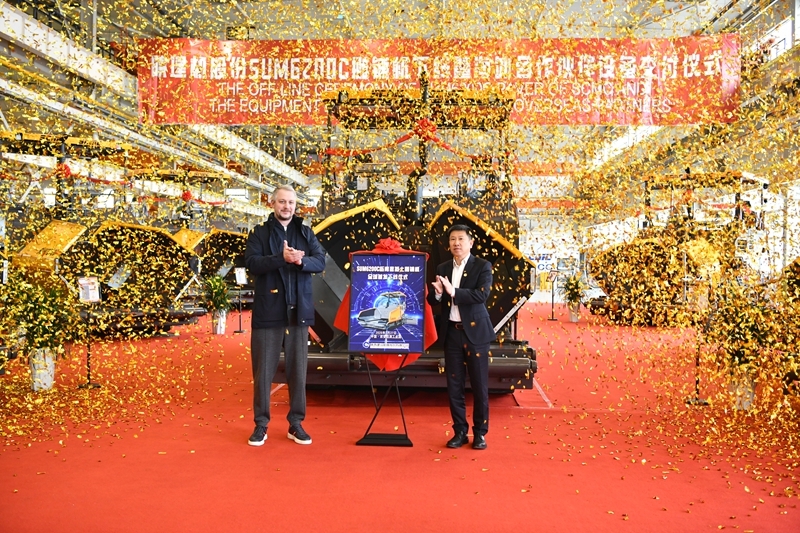 陜建機股份舉辦SUM6200C攤鋪機下線暨海外合作伙伴設(shè)備交付儀式