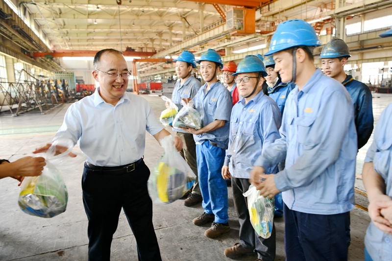 盛夏時(shí)節(jié),烈日炎炎。為進(jìn)一步推動(dòng)主題教育走深走實(shí),扎實(shí)開(kāi)展“我為群眾辦實(shí)事”實(shí)踐活動(dòng),做好高溫天氣職工群眾安全健康權(quán)益,陜建機(jī)股份領(lǐng)導(dǎo)班子成員走進(jìn)基層,開(kāi)展盛夏“送清涼”活動(dòng)。8月1日下午,該公司黨委書(shū)記、董事長(zhǎng)楊宏軍等領(lǐng)導(dǎo)班子成員到鉚焊車(chē)間生產(chǎn)現(xiàn)場(chǎng),把清涼物品送到了一線職工們手中。楊宏軍與職工們親切交流,關(guān)心他們身體健康,了解他們生產(chǎn)生活情況,參觀了鉚焊車(chē)間為職工配置的包含冷飲機(jī)和冰淇淋機(jī)的“清涼角”,品嘗了職工制作的冰淇淋,對(duì)鉚焊車(chē)間的做法給予充分肯定,同時(shí)叮囑大家越是在高溫天氣,越要增強(qiáng)安全意識(shí),...