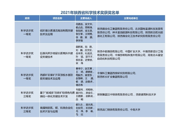 陜煤集團5項科技成果榮獲2021年度陜西省科學(xué)技術(shù)獎