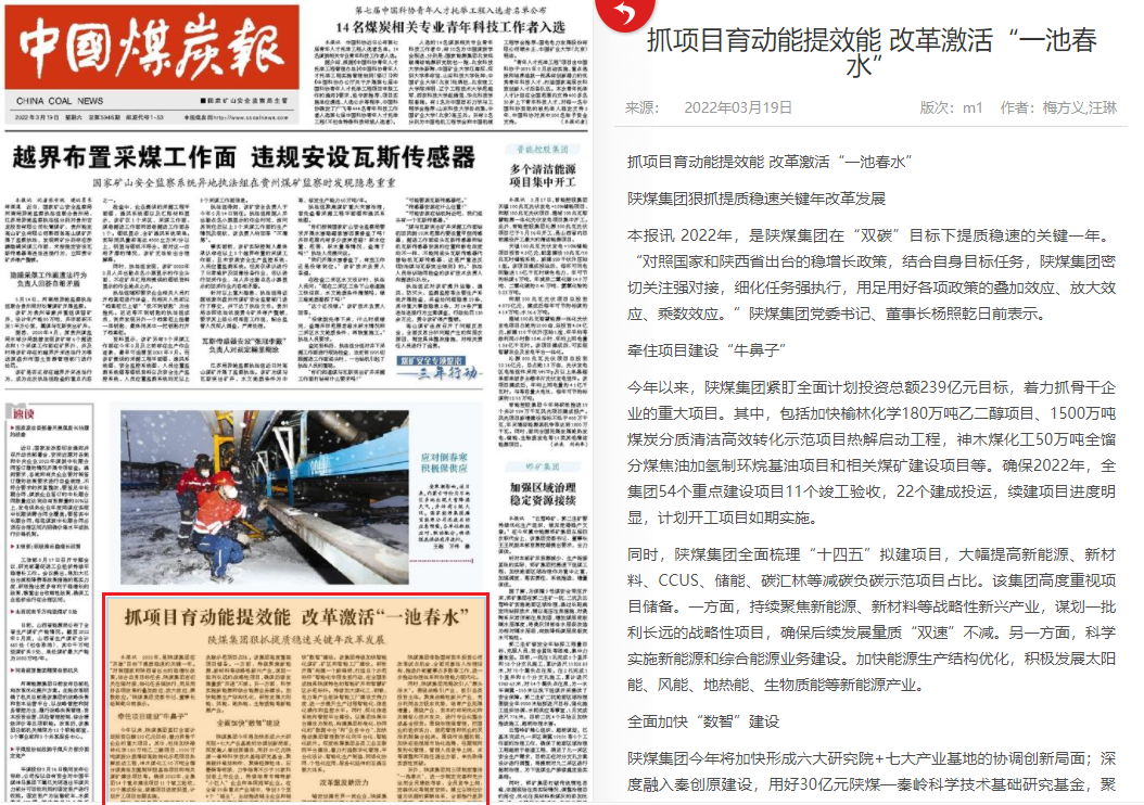 中國煤炭報| 陜煤集團狠抓提質(zhì)穩(wěn)速關(guān)鍵年改革發(fā)展